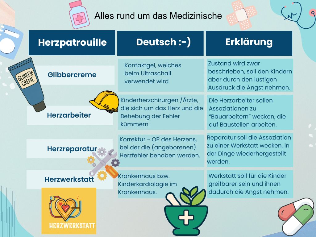 Hier übersetzen wir die kindgerechten Erklärungen oder „komischen Bezeichnungen“ in Worte, die Erwachsene verstehen – und zeigen, warum wir bestimmte Dinge so genannt haben. Auf das Schmunzeln, fertig, los…