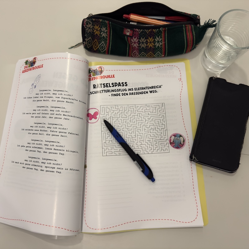 Die Begleitmappe zur Herz-OP beinhaltet eine Auswahl an kreativen und praktischen Beschäftigungen, die während des Aufenthalts im Krankenhaus für Ablenkung und Beschäftigung sorgen können.